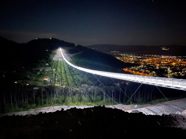 innentől kezdve a sátoraljaújhelyi híd, amely két méterrel előzi meg a korábbi csúcstartót, tartja a leghosszabb fesztávolságú gyalogos függőhíd rekordját.